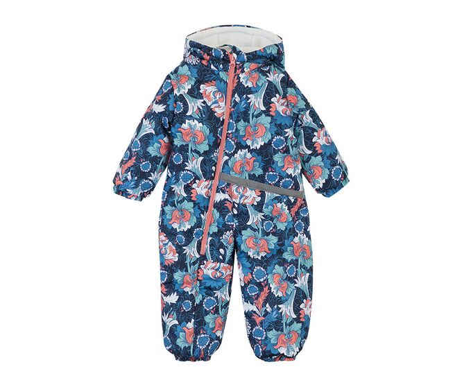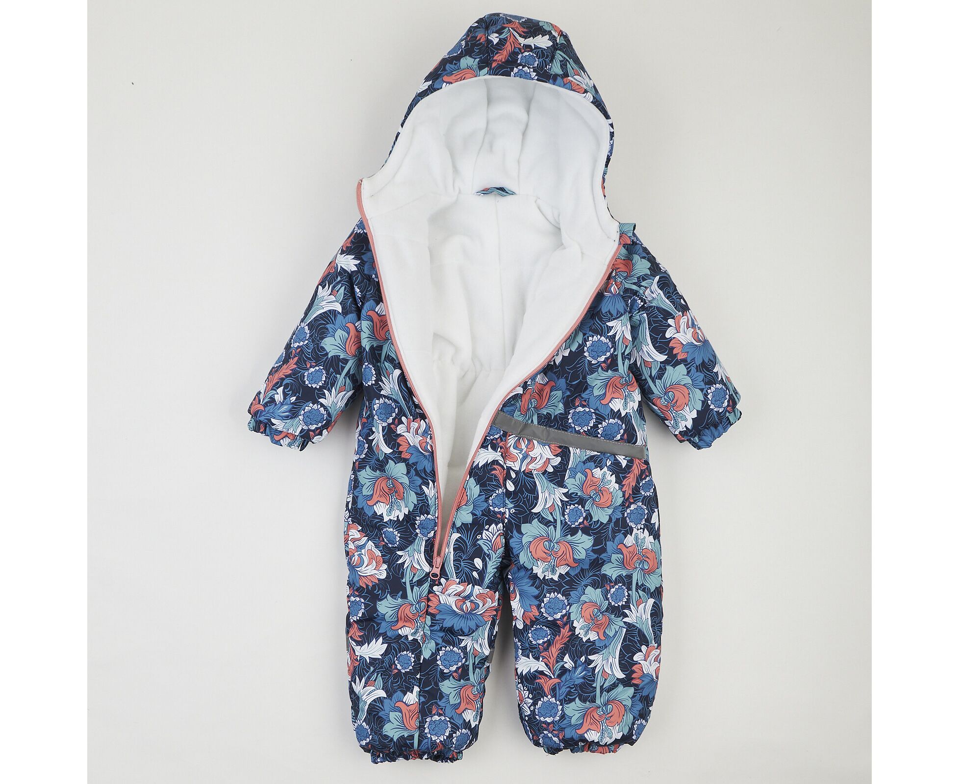 Комбінезон з каптуром із щільної воловідштовхувальної плащовки на флісі з утеплювачем синтепух щільністю 250г/кв.м. , який добре зберігає форму та об'єм, навіть після багаторазового стиснення та забезпечує тепло навіть при сильних морозах. Застібка асиметрична, низ ніжок та рукавів на еластичній тасьмі. Деталі переду та спинки оздоблені світловідбивними елементами. Для полегшення надягання на дитину виворіт рукавів з гладкої тканини підкладки.