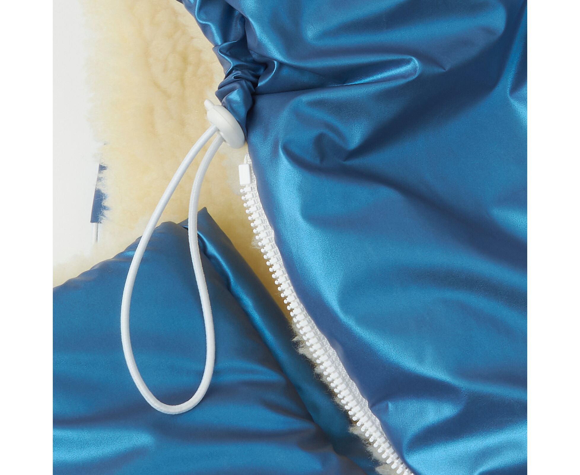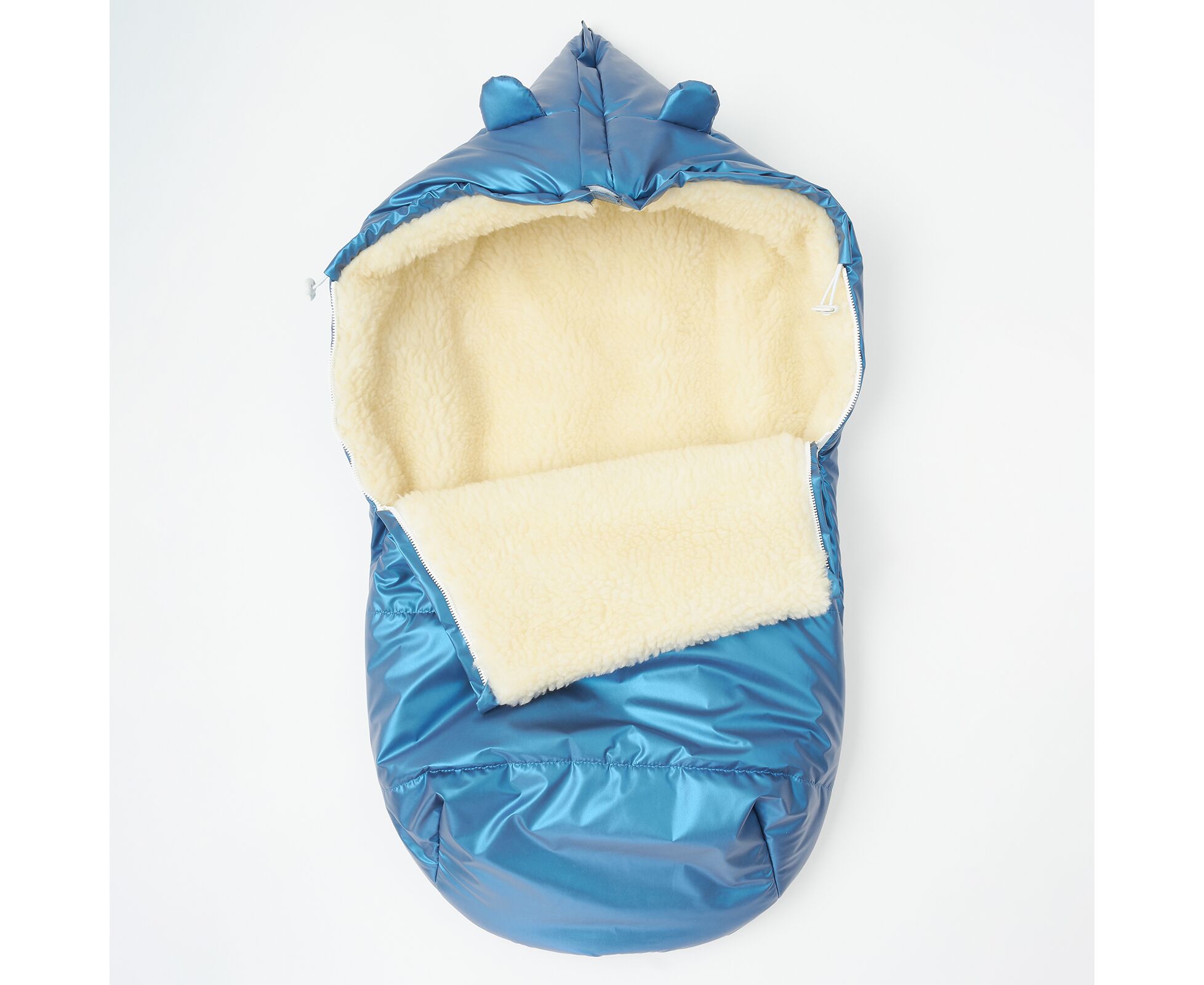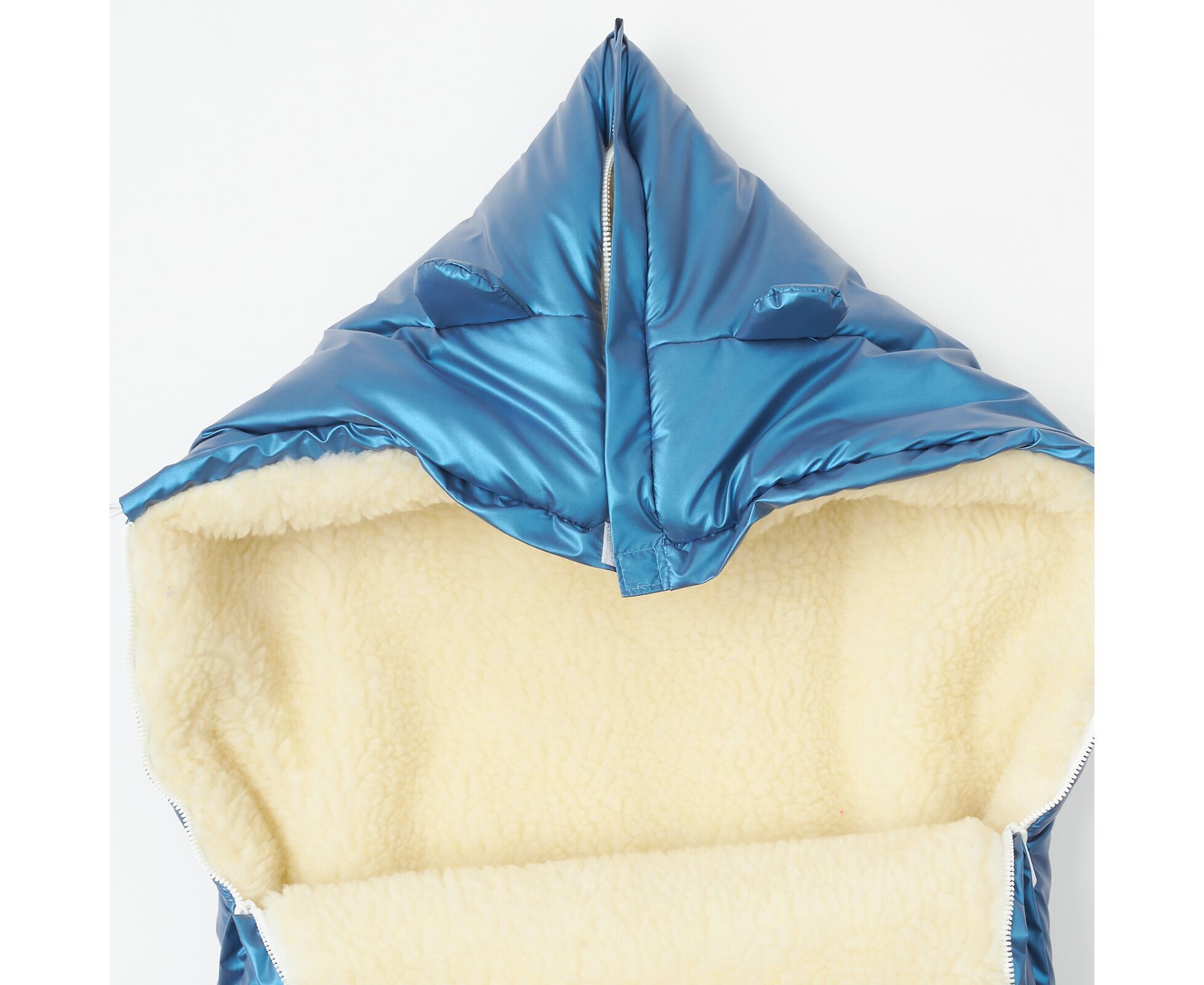 Ззовні конверт виготовлений з якісної водонепроникної плащовки, всередині підкладка з теплої гіпоалергеної овчини, з утеплювачем синтепоном щільністю 200г/кв.м.